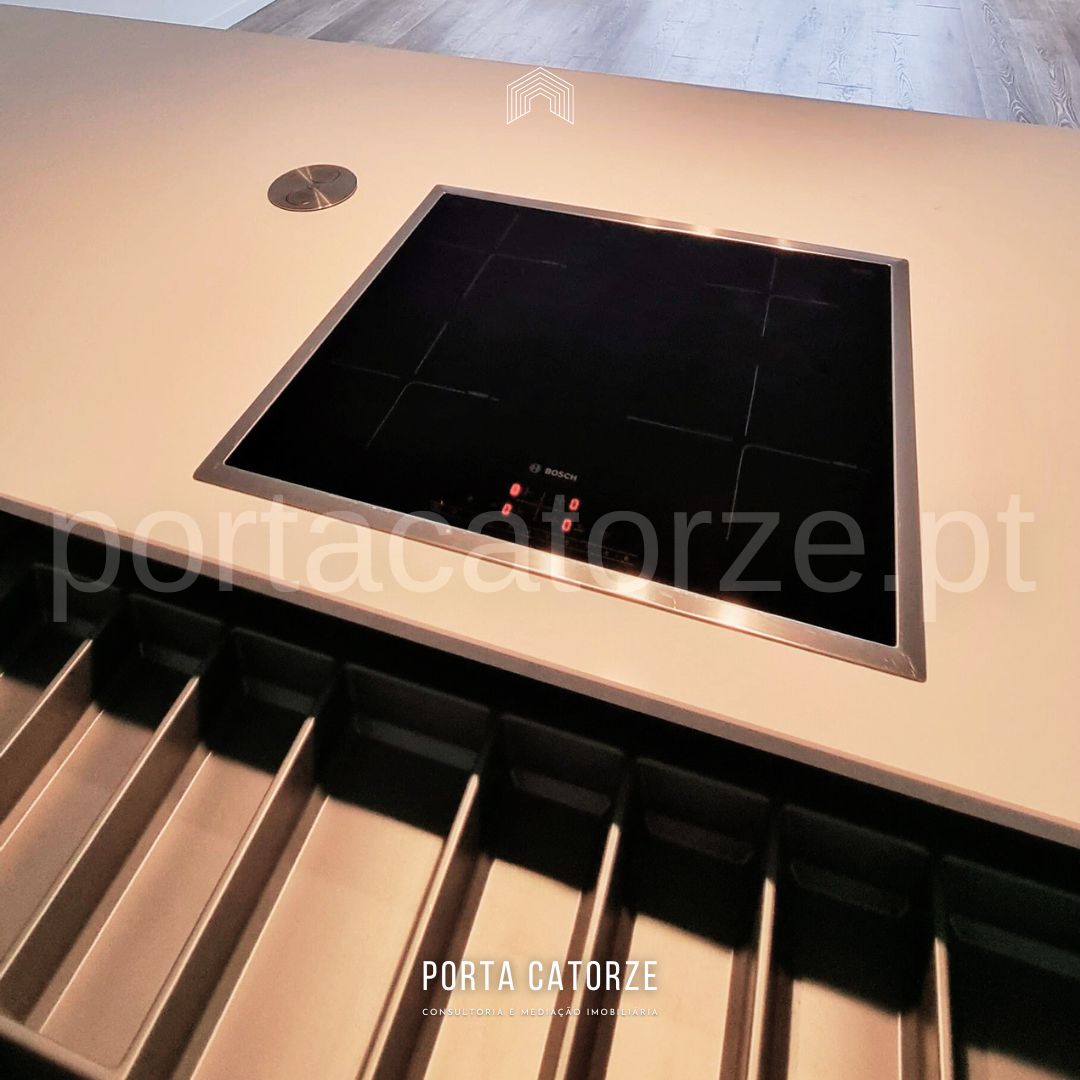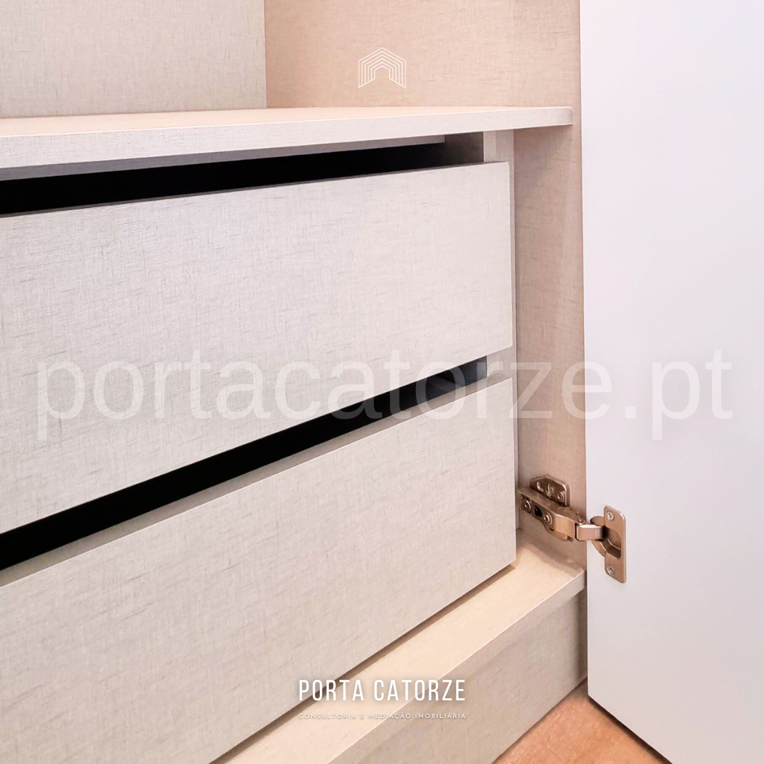 • Roupeiros embutidos (compartimentados e revestidos a linho Cancún nos quartos e hall de distribuição)